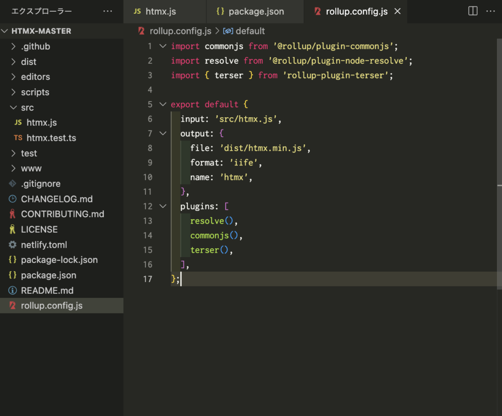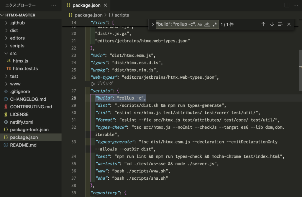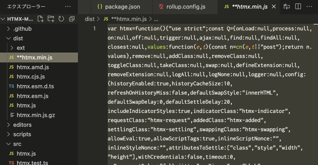 dist/htmx.min.jsが生成されていることを確認します。- 生成された