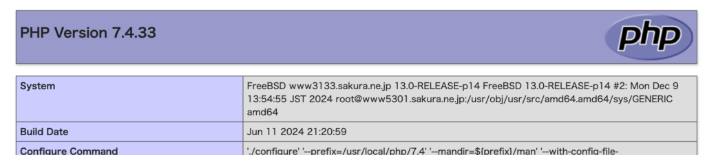注意: PHPバージョンの確認が終わったら、セキュリティ上の理由から必ず info.php は削除してください。