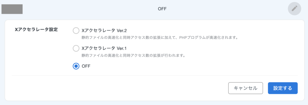 サーバーパネル → 「高速化」→「Xアクセラレータ」を該当ドメインで OFF にします。