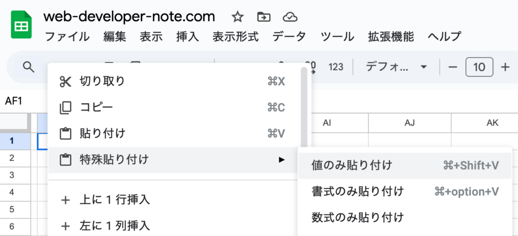 右クリックメニューから「値として貼り付け」を選択します。これにより、関数の結果が固定された値に変換されます。